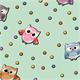 Renk Açıklaması : Yeşil Zemin Üzerine Pembe, Turuncu, Mavi Baykuş ve Puanlar