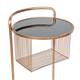 Yan sehpa, yan yüzeyindeki bronz rengiyle dikkat çekici bir görünüme sahiptir. Göz alıcı tasarımıyla her türlü dekorasyon tarzına uyum sağlayabilen bu sehpa, evinize şıklık ve zarafet katacaktır. Üzerindeki geniş yüzeyi sayesinde, kitap, vazo, çiçek gibi dekoratif objeleri sergileyebilir ve kullanımınıza uygun hale getirebilirsiniz.