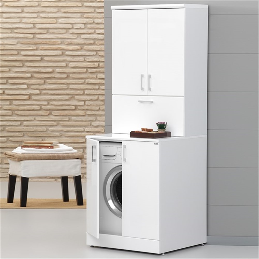 Bu beyaz renkteki dolap, dayanıklı malzemelerden üretilmiştir ve uzun yıllar kullanım imkanı sunar. 70 cm genişliği sayesinde standart ölçülere sahip çamaşır makineleri için idealdir. İçerisindeki geniş ve derin bölmeler, çamaşır deterjanı, yumuşatıcı ve diğer temizlik malzemelerinizi düzenli bir şekilde saklamanızı kolaylaştırır.