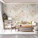 Renk Açıklaması Açık su yeşili ve yavruağzı bulutumsu zemin üzerine sulu boya manzara ve damask