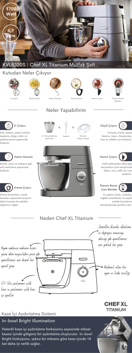 Kenwood KVL8320S Titanium Chef XL 1700 W 6.7 lt Mutfak Şefi