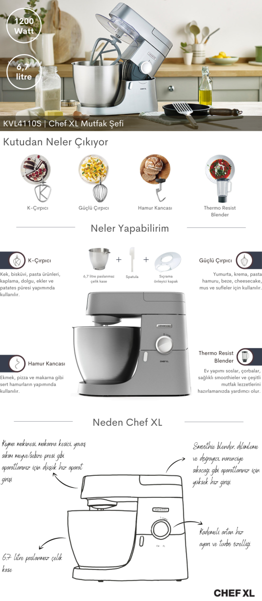 Kenwood KVL4110S Chef XL 1200 Watt 6,7 Lt. Silver Mutfak Şefi