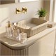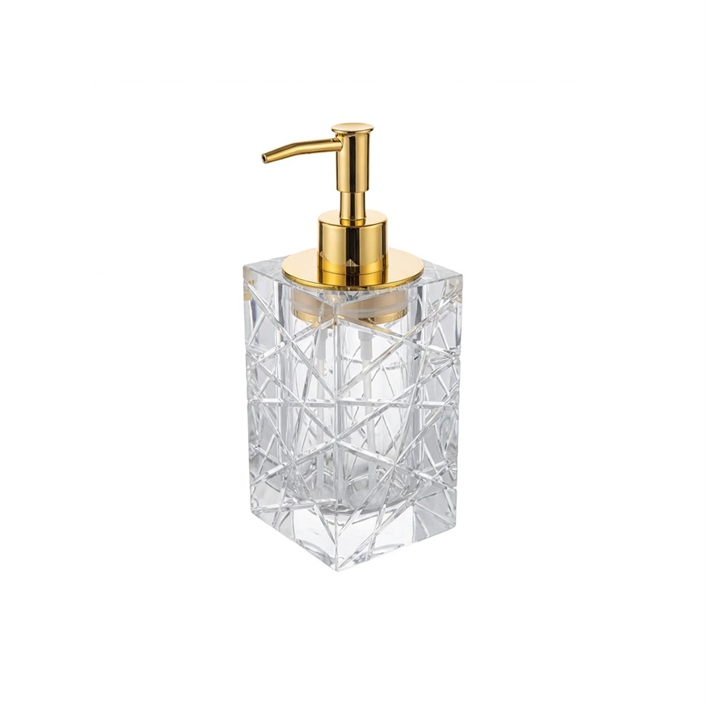 Kobos Banyo Cam Sıvı Sabunluk, geometrik kesim detayları ve şık altın pompa tasarımıyla banyonuza modern ve lüks bir dokunuş katar. Şeffaf cam gövdesi sayesinde dekoratif bir görünüm sunarken, dayanıklı pompa mekanizması ile uzun ömürlü ve pratik kullanım sağlar. Hem estetik hem fonksiyonel yapısıyla banyonuzun stilini tamamlar.
