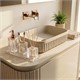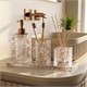 Kobos Banyo Cam Sıvı Sabunluk, geometrik kesim detayları ve şık bakır pompa tasarımıyla banyonuza modern ve lüks bir dokunuş katar. Şeffaf cam gövdesi sayesinde dekoratif bir görünüm sunarken, dayanıklı pompa mekanizması ile uzun ömürlü ve pratik kullanım sağlar. Hem estetik hem fonksiyonel yapısıyla banyonuzun stilini tamamlar.