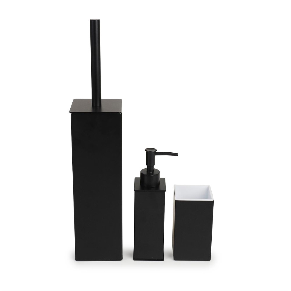 Kobos tezgah üstü kare diş fırçalık ve sıvı sabunluk yerden tuvalet fırçalığı ile birlikte set olarak banyonuzda kullanabilirsiniz.Paslanmaz çelikten üretilmiştir ve uzun ömürlüdür. Mat Siyah rengi ile banyonuza zarafet katacaktır.Sıvı sabunluk haznesi 150ml'dir ve çıkarılıp temizlenebilir.Tuvalet fırçalığının içerisinde plastik haznesi mevcut, çıkarılıp temizlenebilir. Fırça değiştirilebilir yapıdadır. Eskiyen fırça çıkarılıp yeni uyumlu fırça ile değiştirilebilir.Ölçü:Sıvı Sabunluk:19x5cm (150ml hacim)Diş Fırçalık:11x6cmTuvalet Fırçalığı:40x8cmPaket İçeriği:Kobos Tezgah Üstü Kare Sıvı Sabunluk Mat Siyah KBW-627MBKobos Tezgah Üstü Kare Diş Fırçalık Mat Siyah KBW-637MBKobos Kare Tuvalet Fırçalığı Yerden Mat Siyah KBW-822MB