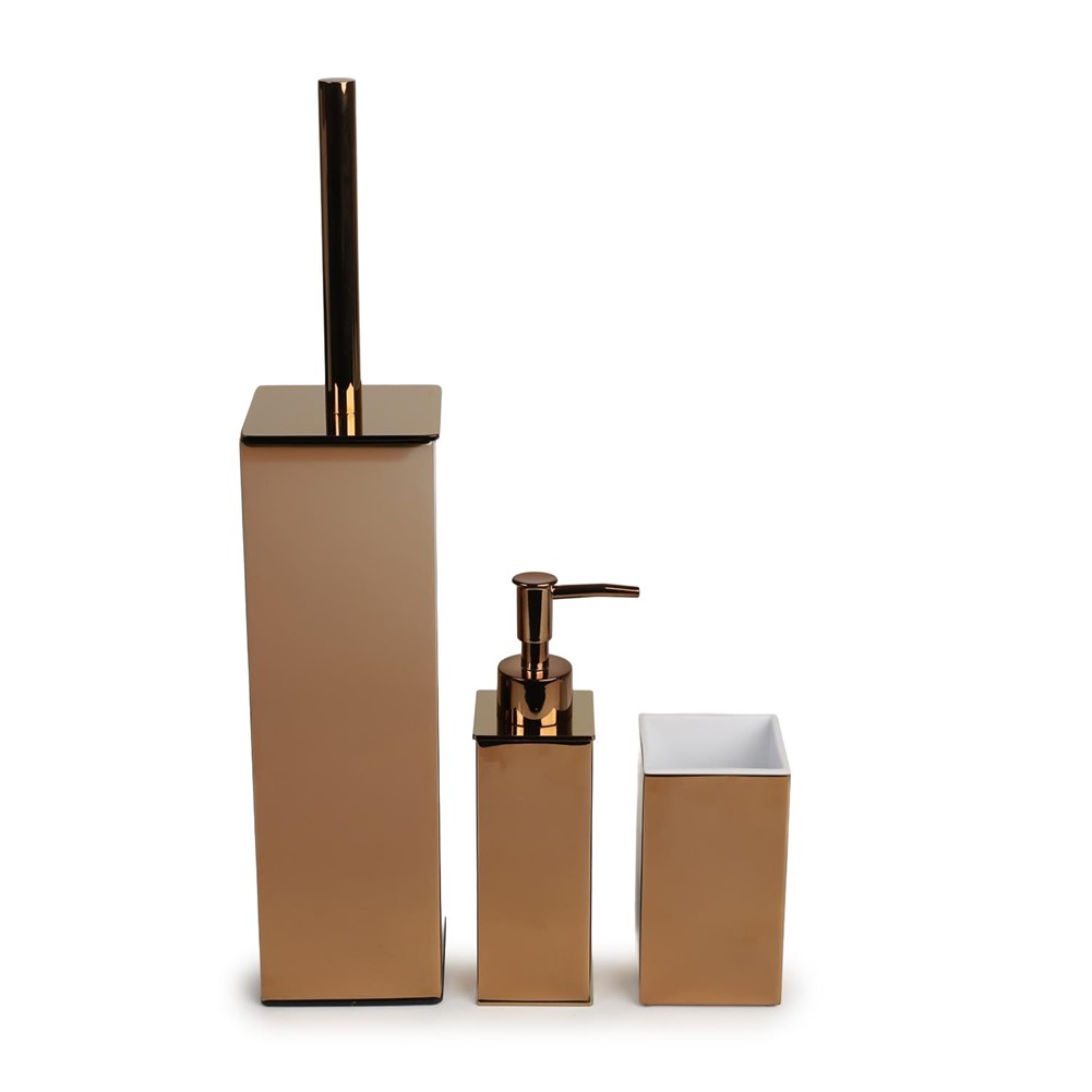 Kobos tezgah üstü kare diş fırçalık ve sıvı sabunluk yerden tuvalet fırçalığı ile birlikte set olarak banyonuzda kullanabilirsiniz.Paslanmaz çelikten üretilmiştir ve uzun ömürlüdür. Parlak Bakır rengi ile banyonuza zarafet katacaktır.Sıvı sabunluk haznesi 150ml'dir ve çıkarılıp temizlenebilir.Tuvalet fırçalığının içerisinde plastik haznesi mevcut, çıkarılıp temizlenebilir. Fırça değiştirilebilir yapıdadır. Eskiyen fırça çıkarılıp yeni uyumlu fırça ile değiştirilebilir.Ölçü:Sıvı Sabunluk:19x5cm (150ml hacim)Diş Fırçalık:11x6cmTuvalet Fırçalığı:40x8cmPaket İçeriği:Kobos Tezgah Üstü Kare Sıvı Sabunluk Parlak Bakır KBW-627RSKobos Tezgah Üstü Kare Diş Fırçalık Parlak Bakır KBW-637RSKobos Kare Tuvalet Fırçalığı Yerden Parlak Bakır KBW-822RS