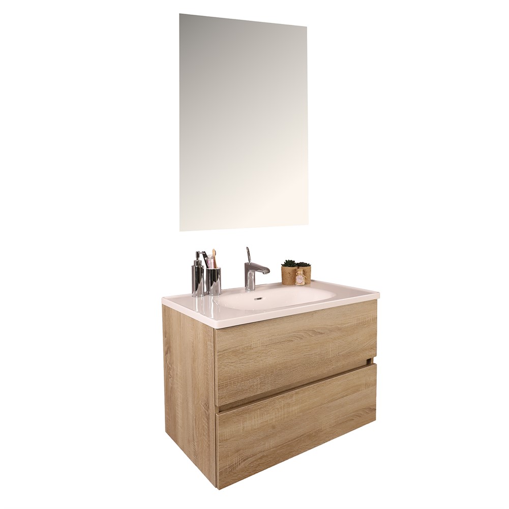 Kobos Simple 80 cm Çekmeceli Banyo Dolabı Seti Light Walnut