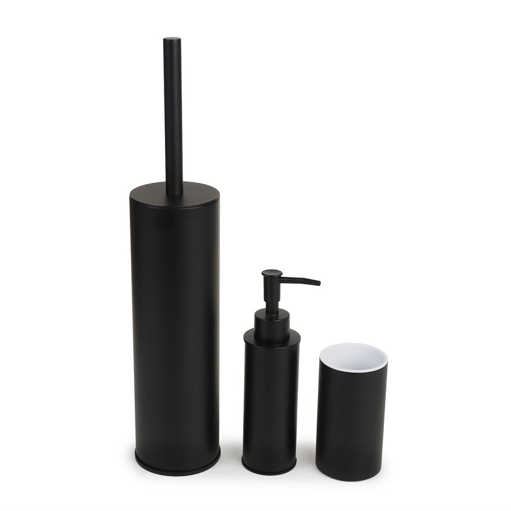 Kobos tezgah üstü yuvarlak diş fırçalık ve sıvı sabunluk yerden tuvalet fırçalığı ile birlikte set olarak banyonuzda kullanabilirsiniz.Paslanmaz çelikten üretilmiştir ve uzun ömürlüdür. Mat Siyah rengi ile banyonuza zarafet katacaktır.Sıvı sabunluk haznesi 150ml'dir ve çıkarılıp temizlenebilir.Tuvalet fırçalığının içerisinde plastik haznesi mevcut, çıkarılıp temizlenebilir. Fırça değiştirilebilir yapıdadır. Eskiyen fırça çıkarılıp yeni uyumlu fırça ile değiştirilebilir.Ölçü:Sıvı Sabunluk:19x5cm (150ml hacim)Diş Fırçalık:11x6cmTuvalet Fırçalığı:40x8cmPaket İçeriği:Kobos Tezgah Üstü Yuvarlak Sıvı Sabunluk Mat Siyah KBW-621MBKobos Tezgah Üstü Yuvarlak Diş Fırçalık Mat Siyah KBW-631MBKobos Yuvarlak Tuvalet Fırçalığı Yerden Mat Siyah KBW-811MB