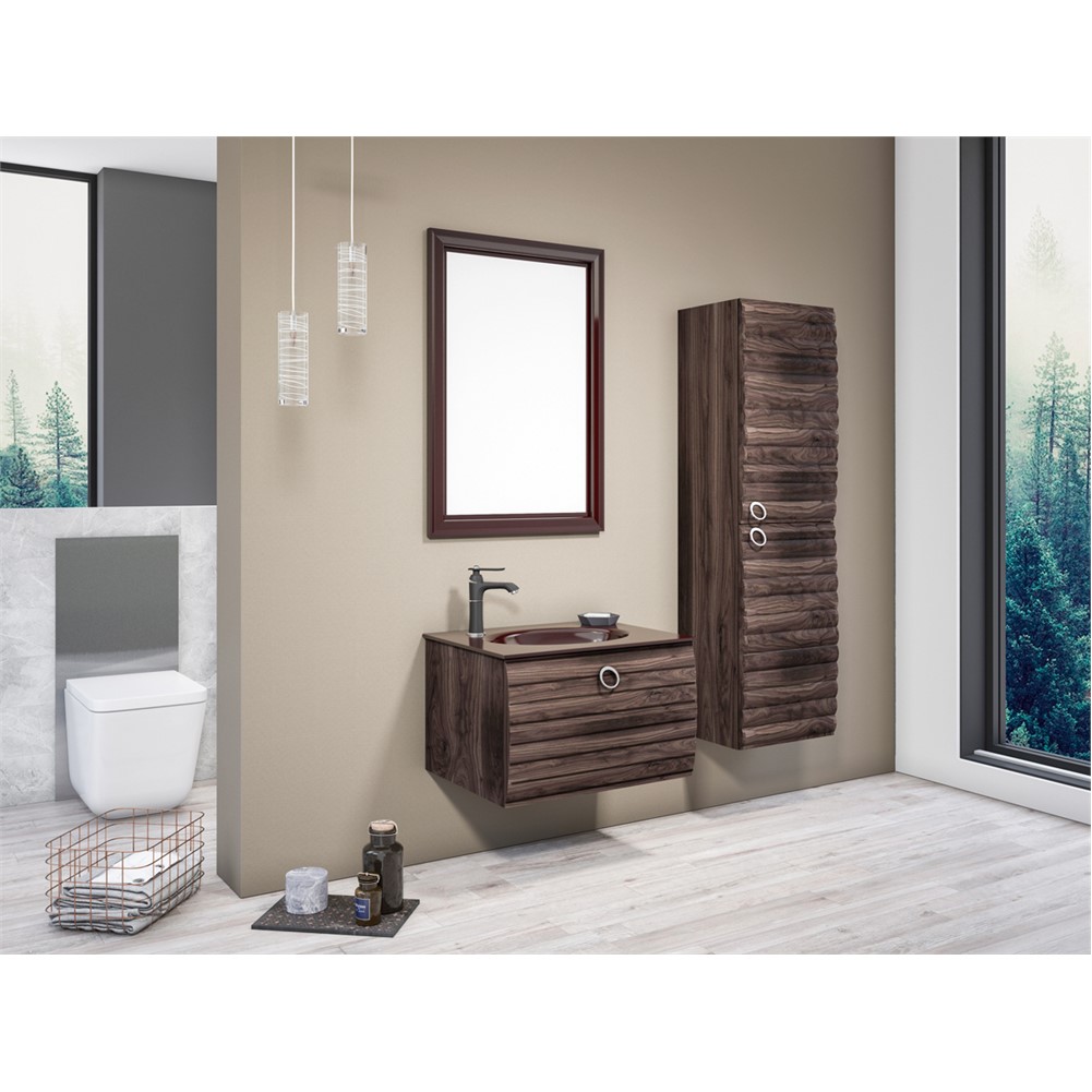 ORKA Anzer Banyo Dolabı Takımı doğal ceviz rengi ve modern tasarımıyla banyonuza şıklık katmaya hazır! Banyonuzda yerden tasarruf etmek istiyorsanız, bu 60 cm genişliğindeki pratik dolap takımı tam da size göre.