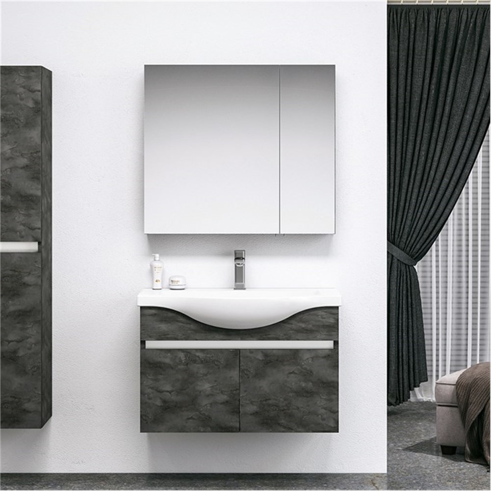 Bu banyo dolabı takımı, dayanıklı ve kaliteli malzemelerden üretilmiştir. Dolapların yüzeyi, suya, neme ve çizilmelere karşı dayanıklı özelliklere sahiptir. Bu sayede uzun ömürlü bir kullanım sunar.