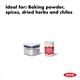 Bu mini kare saklama kabının 0,4 litrelik kapasitesi, çeşitli türdeki yiyecekleri muhafaza etmek için idealdir. Kuru gıdalar, krakerler, bisküviler, baharatlar, fındık veya daha fazlasını saklamak için kullanabilirsiniz.