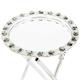 Bu yan sehpa, dikkat çekici ve benzersiz tasarımıyla herhangi bir dekorasyon tarzına mükemmel şekilde uyar. Eskitilmiş metal aksam, sehpanın karakteristik rustik görünümünü tamamlarken, açık renkli ahşap üst yüzeyi doğal ve sıcak bir hava yaratır. İnce işçilik ve detaylara verilen özen, ürüne zarafet ve lüks bir hava katar.