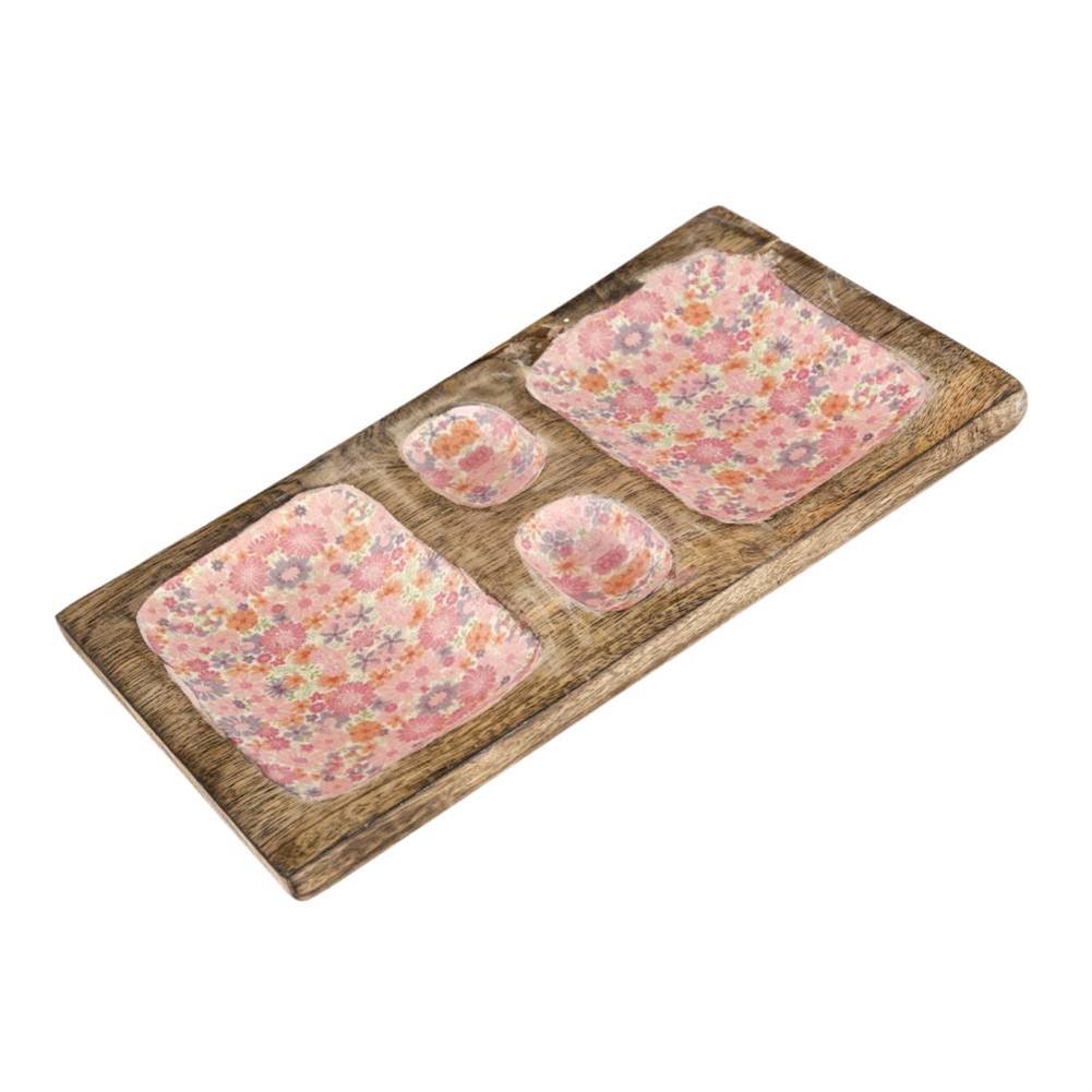 Vitale Şiva Çiçek Desenli Dekoratif Pembe Tepsi AK.FQ0021-P