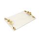 Beyaz mermer tepsi, şıklık ve zarafeti yaşam alanınıza taşıyan bir otantik parçadır. Doğal beyaz mermerin estetik ve dayanıklı yapısıyla üretilen bu tepe, evinizin dekorasyonunu tamamlayacak şık bir detaydır. Tepsi, 25x41x7 cm ölçülerinde olduğundan büyük ve kullanımı oldukça pratiktir. Sofralarınızı süsleyecek, misafirlerinizi etkileyecek bir parça olarak kullanabilirsiniz. Üzerinde yer alan desenler ve detaylar ile göz alıcı bir görünüm sunan beyaz mermer tepe, her türlü masa ve yemek takımı ile uyum sağlar. İsterseniz çay-kahve servisi için kullanabileceğiniz gibi, dekoratif amaçlı kullanarak evinizin atmosferini değiştirebilirsiniz. Kaliteli malzemesi ve şık tasarımıyla uzun yıllar şıklığını koruyacak olan bu mermer tepsiyi, özel günlerde misafirleriniz için de tercih edebilirsiniz. Hafif ve taşınması kolay olması sayesinde de kullanımı oldukça rahattır. Beyaz mermer tepe ile evinize zarafet ve şıklık katmak için hemen sipariş verebilirsiniz.
