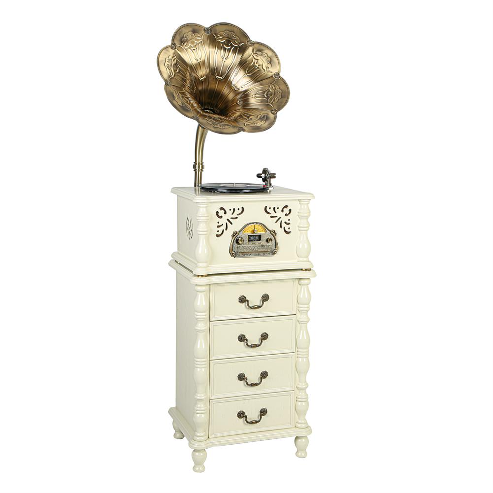 Vitale Çekmeceli Ahşap Gramafon Krem AK.WLT0786