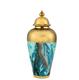 Bu dekoratif vazo, yüksek kaliteli cam malzemeden üretilmiştir ve dayanıklı yapısıyla uzun süre kullanılabilir. Göz alıcı geometrik desenleri ve zarif altın detayları, herhangi bir mekana zarafet katar. Vazonun boyutu, çiçeklerinizi veya bitkilerinizi sergilemek için yeterli alan sunar.