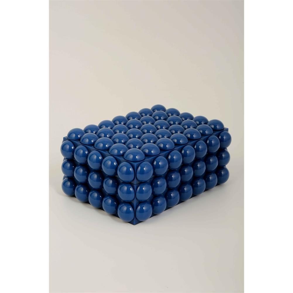 Mavi rengi ve boncuk detaylarıyla dikkat çeken bu kutu, iç mekanlarınıza modern bir hava katacaktır. Yatak odası, oturma odası, mutfak gibi farklı alanlarda kullanabileceğiniz bu kutu, eşyalarınızı şık bir şekilde sergilemenize olanak tanır.
