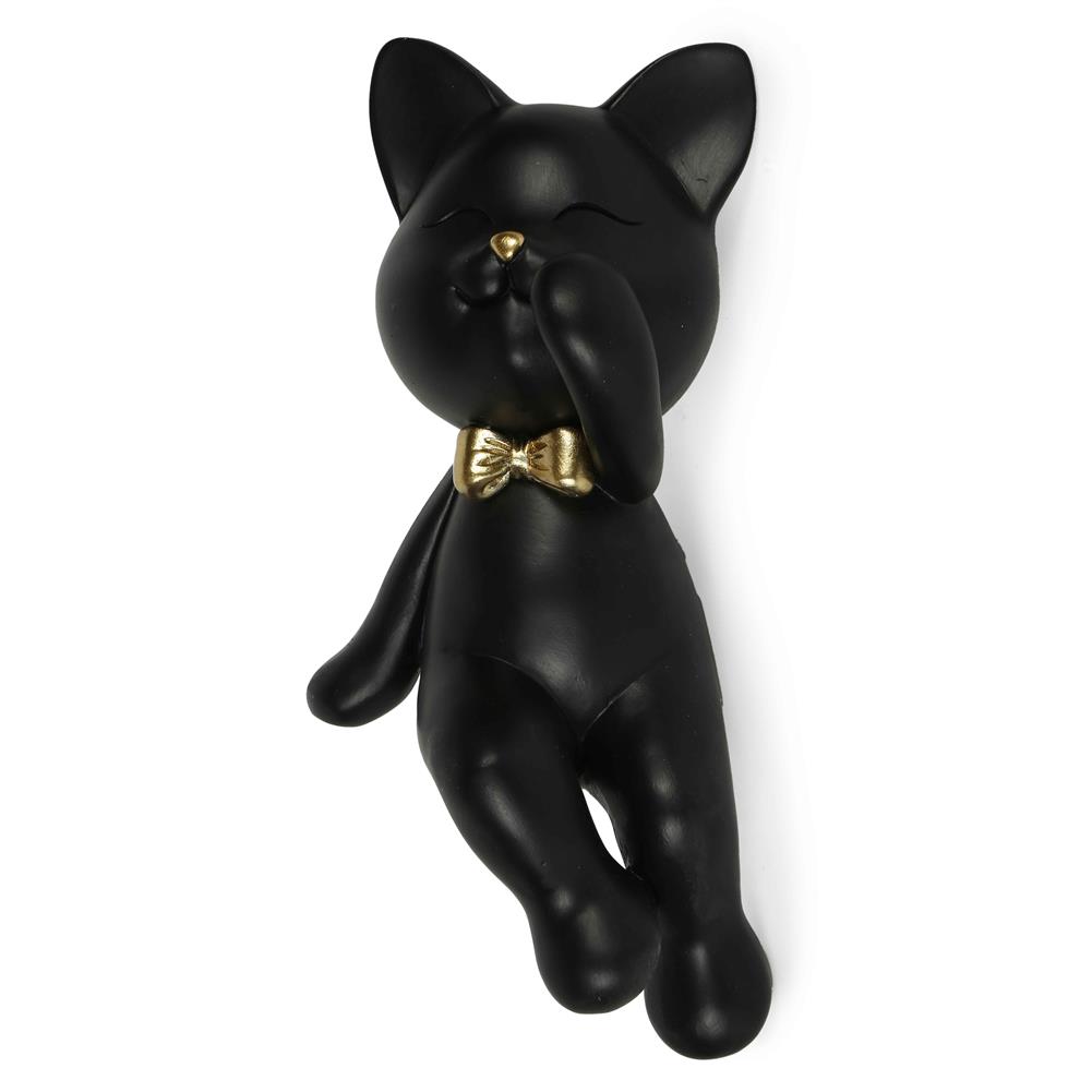 Heykelin boyutları 11*10*22 cm olup, masa üstü veya kitaplık gibi küçük alanlara kolayca yerleştirilebilir. Siyah renkte olan kedi heykeli, her türlü dekorasyon tarzına uyum sağlayacak şık ve minimal bir tasarıma sahiptir.
