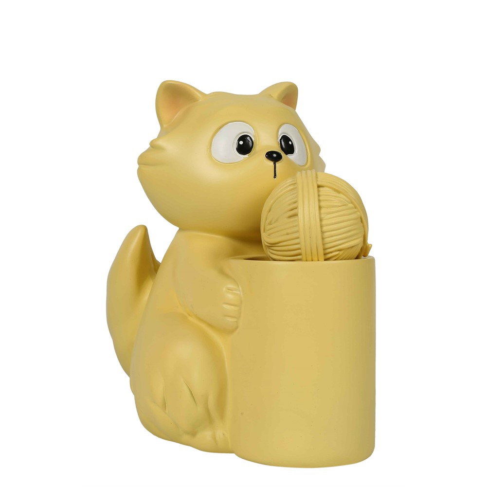 Sarı rengi ile enerjik ve neşeli bir hava katarken, kedicik figürüyle de sizi yaratıcılığa teşvik eder. Hem çalışma masanızda hem de ev dekorasyonunuzda şık bir detay olarak kullanabileceğiniz bu kalemlik, hem kendiniz için hem de sevdikleriniz için harika bir hediye seçeneğidir.