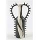 Vazo, 26.2*12.3*43 cm ölçülerinde olup, farklı boyutları ile dekorasyonunuza kolaylıkla uyum sağlayabilir. Etrafı çepeçevre saran dişli detayı, vazonun şıklığını ve güzelliğini ön plana çıkarır. Vazo, çiçeklerle ya da kuru dallarla kullanılarak evinizin her köşesine doğallık ve canlılık katar.