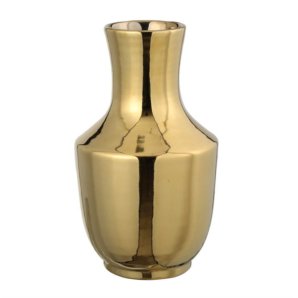 Üstün kaliteli sırlama işlemiyle tamamlanan Vito Suis Dekoratif Vazo Gold, parlak ve gösterişli bir görünüm sunar. Parlak altın rengi, odanıza lüks ve zarafet katar.